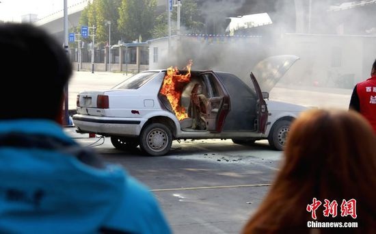 2015年11月1日,河南省鄭州市沙口路,一所駕校在練車場將一輛轎車點燃,實戰傳授學員實戰滅火技能。當日上午,該駕校練車場,數十名學員被召集起來進行實戰滅火課程,練車場上一輛報廢的轎車多次被點燃,由學員們輪班上陣進行滅火體驗。駕校總教練稱,車內電路容易短路突發火情,學員經過實戰演練,可大大提高應對能力,絕對會受益匪淺,駕校求有個好的口碑。